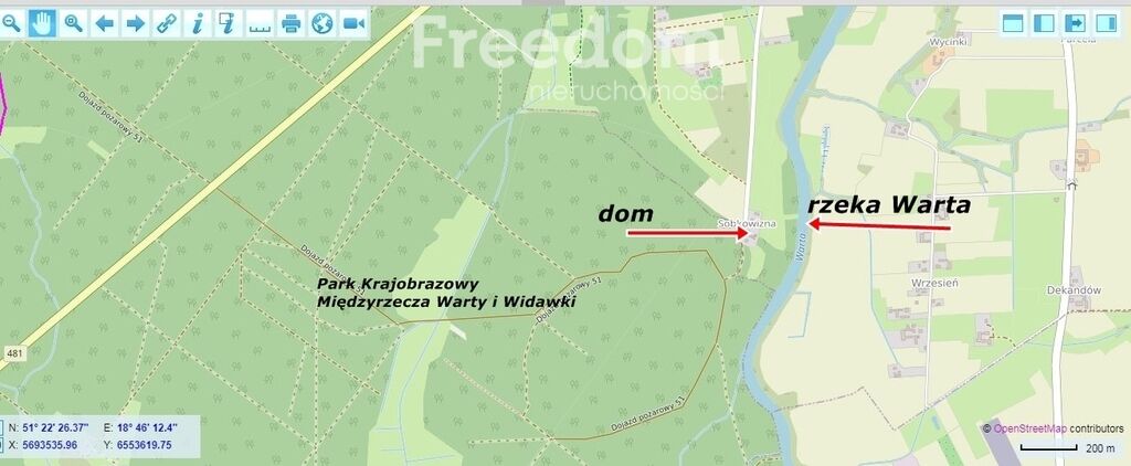 sąsiedztwie lasu i jego mieszkańców nad rzeką Wartą. Odległość
